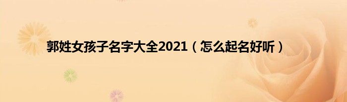 大家好,综合小编来为大家讲解下。郭姓女孩子名字大全2021,怎么起名好听这个很多人还不知道,现在让我们一起来看看吧!