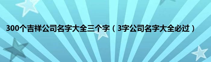 大家好,综合小编来为大家讲解下。300个吉祥公司名字大全三个字,3字公司名字大全必过这个很多人还不知道,现在让我们一起来看看吧!