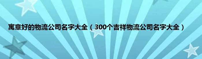一、300个吉祥物流公司名字大全