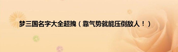 大家好,综合小编来为大家讲解下。梦三国名字大全超拽,靠气势就能压倒敌人!这个很多人还不知道,现在让我们一起来看看吧!