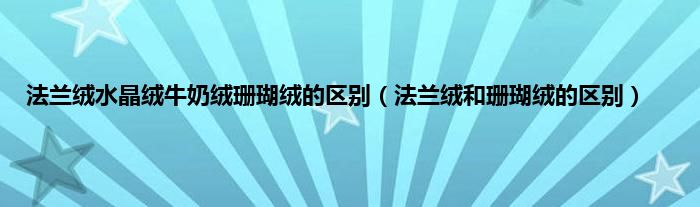 大家好,小科来为大家解答以上问题。法兰绒水晶绒牛奶绒珊瑚绒的区别,法兰绒和珊瑚绒的区别很多人还不知道,现在让我们一起来看看吧!