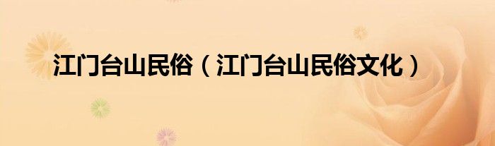大家好,小常来为大家解答以上问题。江门台山民俗,江门台山民俗文化很多人还不知道,现在让我们一起来看看吧!
