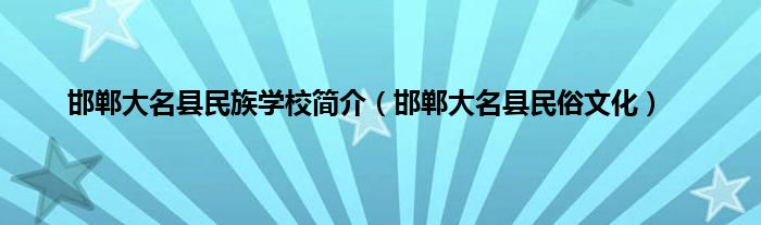 大家好,小常来为大家解答以上问题。邯郸大名县民族学校简介,邯郸大名县民俗文化很多人还不知道,现在让我们一起来看看吧!