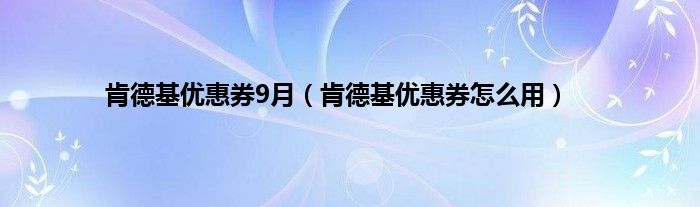大家好,小常来为大家解答以上问题。肯德基优惠券9月,肯德基优惠券怎么用很多人还不知道,现在让我们一起来看看吧!