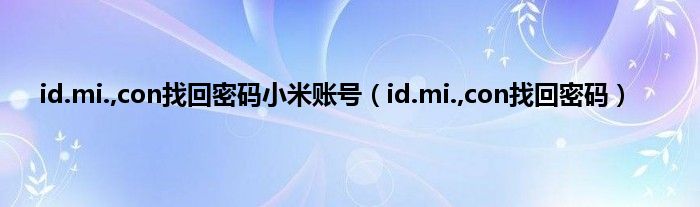 大家好,小常来为大家解答以上问题。id.mi.,con找回密码小米账号,id.mi.,con找回密码很多人还不知道,现在让我们一起来看看吧!