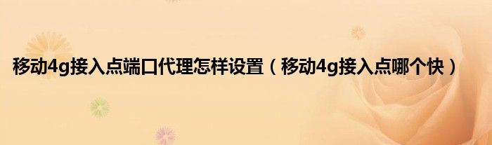 大家好,小常来为大家解答以上问题。移动4g接入点端口代理怎样设置,移动4g接入点哪个快很多人还不知道,现在让我们一起来看看吧!