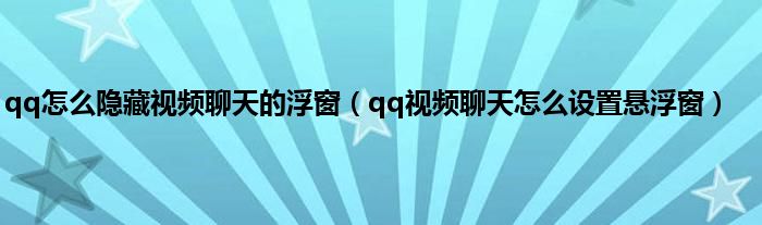 大家好,小常来为大家解答以上问题。qq怎么隐藏视频聊天的浮窗,qq视频聊天怎么设置悬浮窗很多人还不知道,现在让我们一起来看看吧!