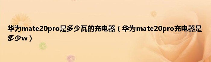 大家好,小常来为大家解答以上问题。华为mate20pro是多少瓦的充电器,华为mate20pro充电器是多少w很多人还不知道,现在让我们一起来看看吧!