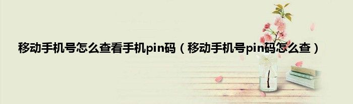 大家好,小常来为大家解答以上问题。移动手机号怎么查看手机pin码,移动手机号pin码怎么查很多人还不知道,现在让我们一起来看看吧!