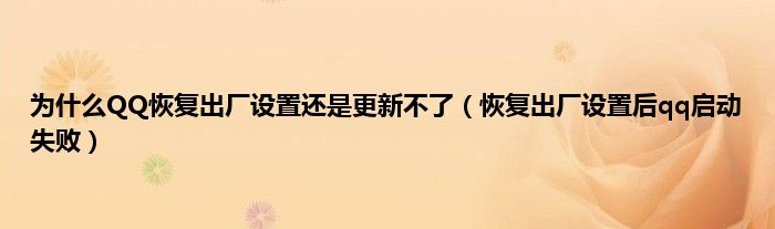 大家好,小常来为大家解答以上问题。为什么QQ恢复出厂设置还是更新不了,恢复出厂设置后qq启动失败很多人还不知道,现在让我们一起来看看吧!