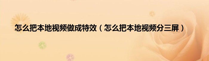 大家好,小常来为大家解答以上问题。怎么把本地视频做成特效,怎么把本地视频分三屏很多人还不知道,现在让我们一起来看看吧!