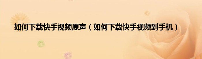 大家好,小常来为大家解答以上问题。如何下载快手视频原声,如何下载快手视频到手机很多人还不知道,现在让我们一起来看看吧!