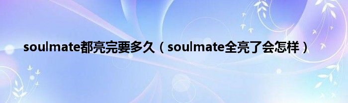 大家好,小常来为大家解答以上问题。soulmate都亮完要多久,soulmate全亮了会怎样很多人还不知道,现在让我们一起来看看吧!