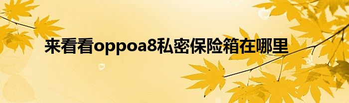 现在大家使用手机的频率越来越频繁,手机也为我们提供了许多的便利,今天小编也来说一下这个来看看oppoa8私密保险箱在哪里相关的文章,这个操作其实不复杂,接下来就给大家介绍一下来看看oppoa8私密保险箱在哪里,一起来看看吧: