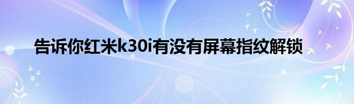 现在大家使用手机的频率越来越频繁,手机也为我们提供了许多的便利,今天小编也来说一下这个告诉你红米k30i有没有屏幕指纹解锁相关的文章,这个操作其实不复杂,接下来就给大家介绍一下告诉你红米k30i有没有屏幕指纹解锁,一起来看看吧: