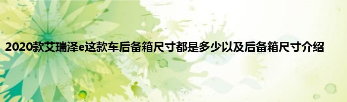 今天来分享一篇个人对2020款艾瑞泽e这款车后备箱尺寸都是多少以及后备箱尺寸介绍相关分析,众所周知,无论是在坊间民众,还是在汽车媒体的议论中,都是不错的,至于产品到底香不香,通过测试还是可以对2020款艾瑞泽e这款车后备箱尺寸都是多少以及后备箱尺寸介绍的产品力分析分析的,一起来看看吧: