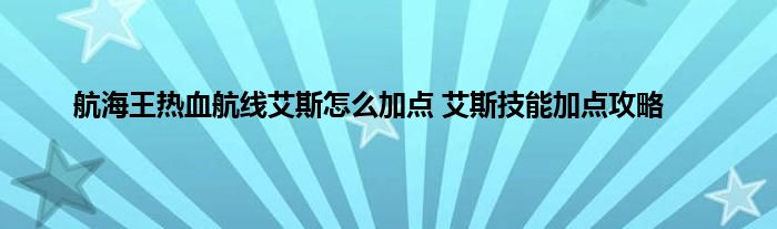 航海王热血航线中艾斯是一个非常厉害的角色,很多玩家想要拥有,而艾斯也连续了从漫画中的定位,火系输出,以技能输出为主,很多玩家在问艾斯要怎么加点,优先点哪个技能比较厉害,小编收集和整理了有关内容,下面就来尾随小编一起来看看吧。