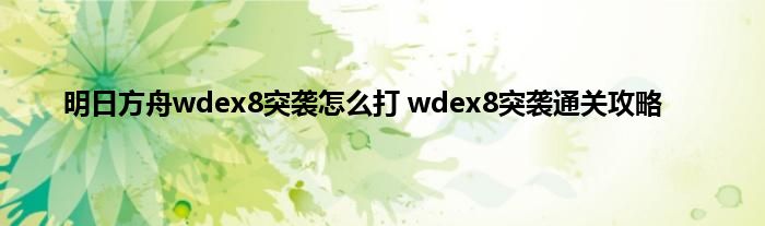 明日方舟wdex8突袭怎么打?很多玩家对于最后的关卡难度比较不容易通关,很多玩家都被卡在了这一关过不去,所以准备了一些阵容,或者打法给你,这样你就可以轻松度过难过,具体的打法,还有细节,我们一起来看看wdex8突袭通关攻略分享给你。