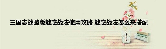 以上就是游侠小编为大家带来的三国志战略版魅惑战法搭配,小伙伴们学会了吗?