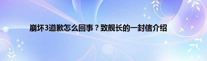 崩坏3道歉怎么回事?致舰长的一封信介绍