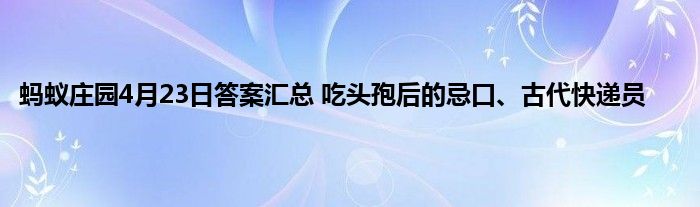吃完头孢类药物后除了不能喝酒,就不用忌口其他了吗?下列哪句诗和古代“快递员”的工作状态有关?这是蚂蚁庄园4月23日的两个题目。蚂蚁庄园完成每日答题可以获得180g饲料,每天会有各种题目出给大家,那么蚂蚁庄园4月23日的答案是什么呢?和小编一起来看看吧。