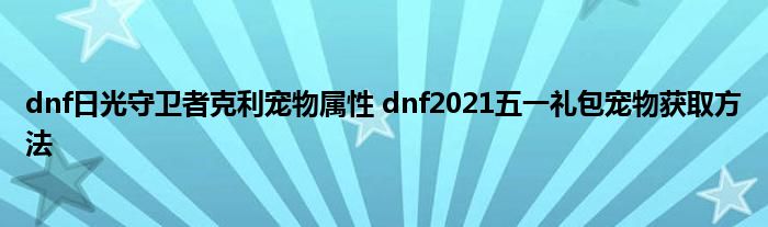 dnf日光守卫者克利宠物属性怎么样?dnf五一套装礼包会上线新的宠物日光守卫者克利,现在的礼包宠物也是卖点之一了,这次的日光守卫者克利玩家们应该也比较好奇具体的属性是什么。下面就带来了详细的属性和猎取方法,希翼大家喜欢。