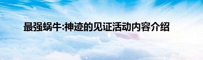 小编今天给各位玩家朋友们带来的是最强蜗牛:神迹的见证活动内容介绍,有记得的玩家朋友吗?不记得也没有关系,小编已经帮助大家把最强蜗牛:神迹的见证活动内容介绍找了出来,你只需要动动你的小手就可以轻松知道啦,快来瞧一瞧吧。