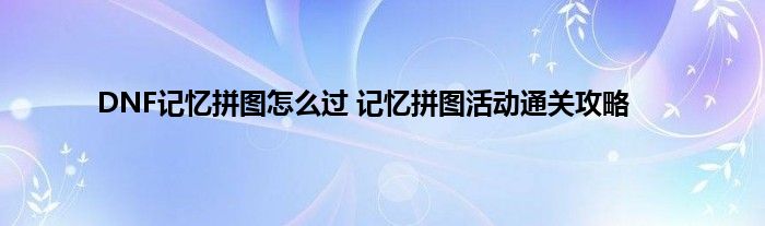 DNF今天进行了更新,有很多玩家不知道记忆拼图该怎么玩,卡在了记忆拼图上,记忆拼图是这次的活动玩法之一,通关之后可以获得奖励,下面就来尾随小编一起来看一下详细内容吧,希翼能够帮到大家。