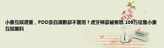 感谢你在百忙之中抽出时间阅读小象互娱遭重,PDD亲自道歉却不管用?虎牙神豪被惹怒,100万征集小象互娱黑料这篇文章。你觉得今天小象互娱遭重,PDD亲自道歉却不管用?虎牙神豪被惹怒,100万征集小象互娱黑料话题怎么样?关于小象互娱遭重,PDD亲自道歉却不管用?虎牙神豪被惹怒,100万征集小象互娱黑料这篇文章的任何评论都可以告诉我。你的每一个建议都是对小编辑的肯定和鼓舞。小编明天会继续给你带来更多的好内容。我希翼你不要错过。感谢支持哟!