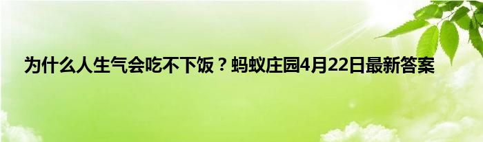 大家好,蚂蚁庄园4月22日的问题已经出来了,和健康类有关,蚂蚁庄园今天的问题是为什么人生气容易吃不下饭?那么问题的答案是什么呢,答对的可以获得小鸡饲料用来喂养小鸡,小编收集和整理了相关答案以及解析,下面一起来看看吧!