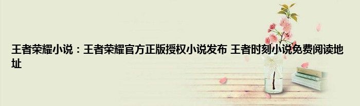 许多的农药玩家都非常关心王者荣耀官方正版授权小说发布,特别是对于书虫来说的确很是不错,因此下面就来为各位带来《王者时刻》小说免费阅读地址希望帮到各位。