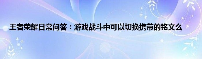 以上就是王者荣耀日常问答:游戏战斗中可以切换携带的铭文么的推荐,相信通过王者荣耀日常问答:游戏战斗中可以切换携带的铭文么这篇文章能帮到你,也欢迎对游戏很感兴趣小伙伴们一起来探讨。