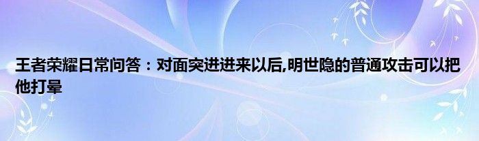以上就是王者荣耀日常问答:对面突进进来以后,明世隐的普通攻击可以把他打晕的推荐,相信通过王者荣耀日常问答:对面突进进来以后,明世隐的普通攻击可以把他打晕这篇文章能帮到你,也欢迎对游戏很感兴趣小伙伴们一起来探讨。