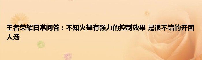 小编今天给各位玩家朋友们带来的是王者荣耀日常问答:不知火舞有强力的控制效果,是很不错的开团人选,有记得的玩家朋友吗?不记得也没有关系,小编已经帮助大家把王者荣耀日常问答:不知火舞有强力的控制效果,是很不错的开团人选找了出来,你只需要动动你的小手就可以轻松知道啦,快来瞧一瞧吧。