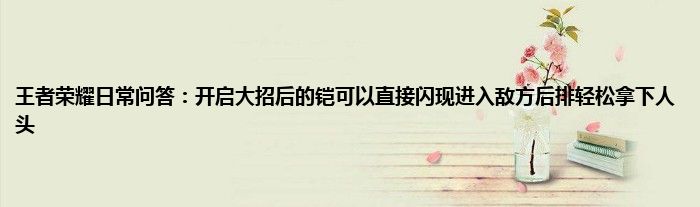 以上就是王者荣耀日常问答:开启大招后的铠可以直接闪现进入敌方后排轻松拿下人头的推荐,相信通过王者荣耀日常问答:开启大招后的铠可以直接闪现进入敌方后排轻松拿下人头这篇文章能帮到你,也欢迎对游戏很感兴趣小伙伴们一起来探讨。