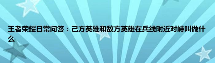 小编今天给各位玩家朋友们带来的是王者荣耀日常问答:己方英雄和敌方英雄在兵线附近对峙叫做什么,有记得的玩家朋友吗?不记得也没有关系,小编已经帮助大家把王者荣耀日常问答:己方英雄和敌方英雄在兵线附近对峙叫做什么找了出来,你只需要动动你的小手就可以轻松知道啦,快来瞧一瞧吧。