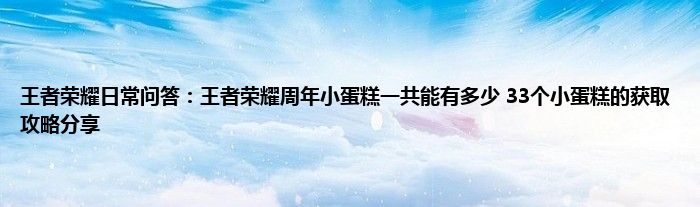 今天来聊聊关于王者荣耀日常问答:王者荣耀周年小蛋糕一共能有多少,33个小蛋糕的获取攻略分享的文章,游戏是很多人的选择,但是游戏玩多了也会身心疲惫,现在就为大家来简单介绍下王者荣耀日常问答:王者荣耀周年小蛋糕一共能有多少,33个小蛋糕的获取攻略分享,希望对各位小伙伴们有所帮助。