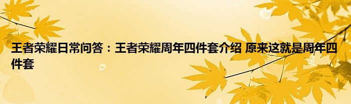 今天来聊聊关于王者荣耀日常问答:王者荣耀周年四件套介绍,原来这就是周年四件套的文章,游戏是很多人的选择,但是游戏玩多了也会身心疲惫,现在就为大家来简单介绍下王者荣耀日常问答:王者荣耀周年四件套介绍,原来这就是周年四件套,希望对各位小伙伴们有所帮助。