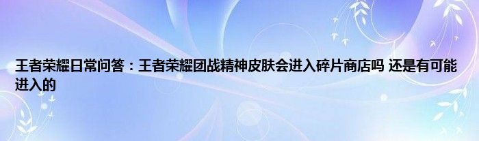 王者荣耀团战精神皮肤会进入碎片商店吗
