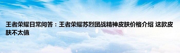 小编今天给各位玩家朋友们带来的是王者荣耀日常问答:王者荣耀苏烈团战精神皮肤价格介绍,这款皮肤不太值,有记得的玩家朋友吗?不记得也没有关系,小编已经帮助大家把王者荣耀日常问答:王者荣耀苏烈团战精神皮肤价格介绍,这款皮肤不太值找了出来,你只需要动动你的小手就可以轻松知道啦,快来瞧一瞧吧。