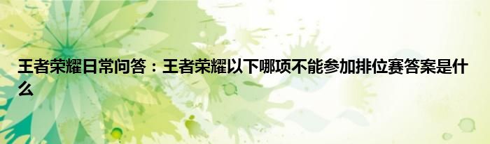以上就是王者荣耀日常问答:王者荣耀以下哪项不能参加排位赛答案是什么的推荐,相信通过王者荣耀日常问答:王者荣耀以下哪项不能参加排位赛答案是什么这篇文章能帮到你,也欢迎对游戏很感兴趣小伙伴们一起来探讨。