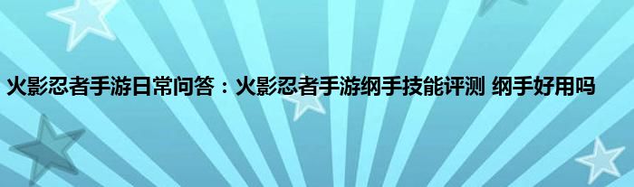 以上就是火影忍者手游日常问答:火影忍者手游纲手技能评测,纲手好用吗的推荐,相信通过火影忍者手游日常问答:火影忍者手游纲手技能评测,纲手好用吗这篇文章能帮到你,也欢迎对游戏很感兴趣小伙伴们一起来探讨。
