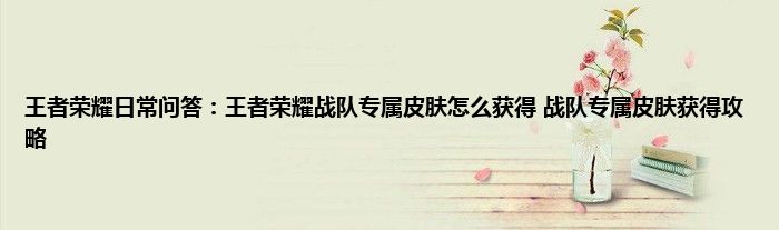 以上就是王者荣耀日常问答:王者荣耀战队专属皮肤怎么获得,战队专属皮肤获得攻略的推荐,相信通过王者荣耀日常问答:王者荣耀战队专属皮肤怎么获得,战队专属皮肤获得攻略这篇文章能帮到你,也欢迎对游戏很感兴趣小伙伴们一起来探讨。