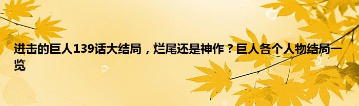 今天进击的巨人139话大结局正式放出,连载多年漫画终于完结,但是很多粉丝对于谏山创给出的结局很是不满,认为其烂尾,但也有人表示结尾还可以接受,到底是烂尾还是神作呢,甚至有人说粉丝不懂谏山创,下面就来一起看看到底各个任务结局吧。