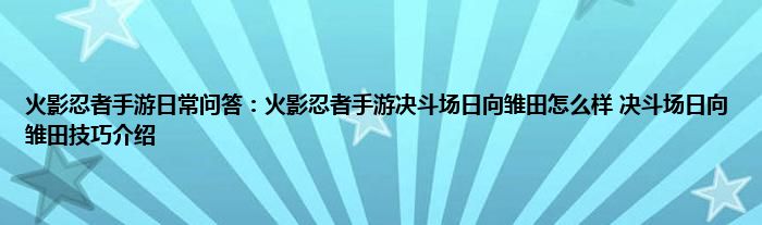 以上就是火影忍者手游日常问答:火影忍者手游决斗场日向雏田怎么样,决斗场日向雏田技巧介绍的推荐,相信通过火影忍者手游日常问答:火影忍者手游决斗场日向雏田怎么样,决斗场日向雏田技巧介绍这篇文章能帮到你,也欢迎对游戏很感兴趣小伙伴们一起来探讨。