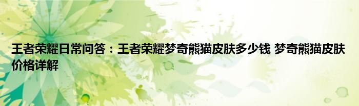 问:王者荣耀梦奇熊猫皮肤多少钱?
