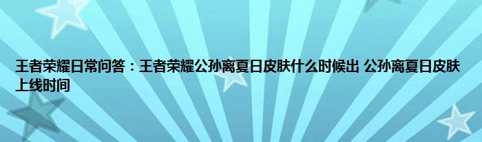 问:王者荣耀公孙离夏日皮肤什么时候出?