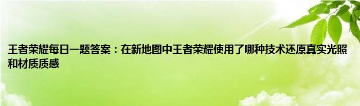 以上就是王者荣耀每日一题答案:在新地图中王者荣耀使用了哪种技术还原真实光照和材质质感的推荐,相信通过王者荣耀每日一题答案:在新地图中王者荣耀使用了哪种技术还原真实光照和材质质感这篇文章能帮到你,也欢迎对游戏很感兴趣小伙伴们一起来探讨。
