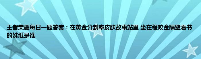 今天来聊聊关于王者荣耀每日一题答案:在黄金分割率皮肤故事站里,坐在程咬金隔壁看书的妹纸是谁的文章,游戏是很多人的选择,但是游戏玩多了也会身心疲惫,现在就为大家来简单介绍下王者荣耀每日一题答案:在黄金分割率皮肤故事站里,坐在程咬金隔壁看书的妹纸是谁,希望对各位小伙伴们有所帮助。