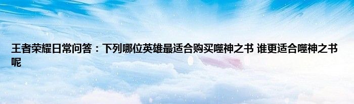 小编今天给各位玩家朋友们带来的是王者荣耀日常问答:下列哪位英雄最适合购买噬神之书,谁更适合噬神之书呢,有记得的玩家朋友吗?不记得也没有关系,小编已经帮助大家把王者荣耀日常问答:下列哪位英雄最适合购买噬神之书,谁更适合噬神之书呢找了出来,你只需要动动你的小手就可以轻松知道啦,快来瞧一瞧吧。